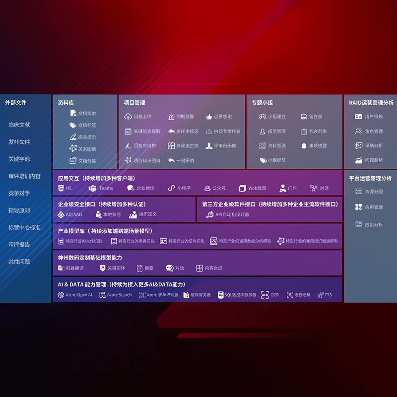 医疗器械产品上市前,,,,要熟悉严格与繁复评审标准,,,,整理分析监管机构指导文件中的海量信息。。。企业急需一个智能化解决方案,,,,提升知识管理效率,,,,提高评审通过率,,以提升其市场竞争力。。。。